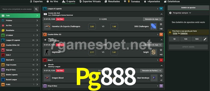 O Pg888 oferece uma grande seleção de opções de apostas em e-sports com probabilidades competitivas